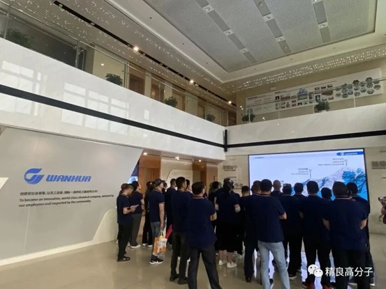 精良高分子团队首先是抵达万华化学位于烟台磁山的全球研发中心和总部基地。通过万华化学视频加讲解员讲解方式,介绍了从改革开放40年来艰苦、高效,自强不息,敢想、善干、大干、快干的快速发展历史,以及进入新世纪尤其是进入新时代之后的大手笔布局及为国担当的发力。